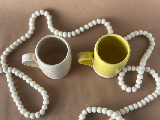 Every pottery piece that is made at Goldfinch pottery is handcrafted and unique. Second pottery pieces are items that vary a bit more. They may be shorter, taller, wider, have a different shape or have small glaze discrepancies. These differences are what makes them even more unique, however the differences do not affect the quality or functionality of the item. Those differences just make them more lovable if you are drawn to the beauty of imperfection.